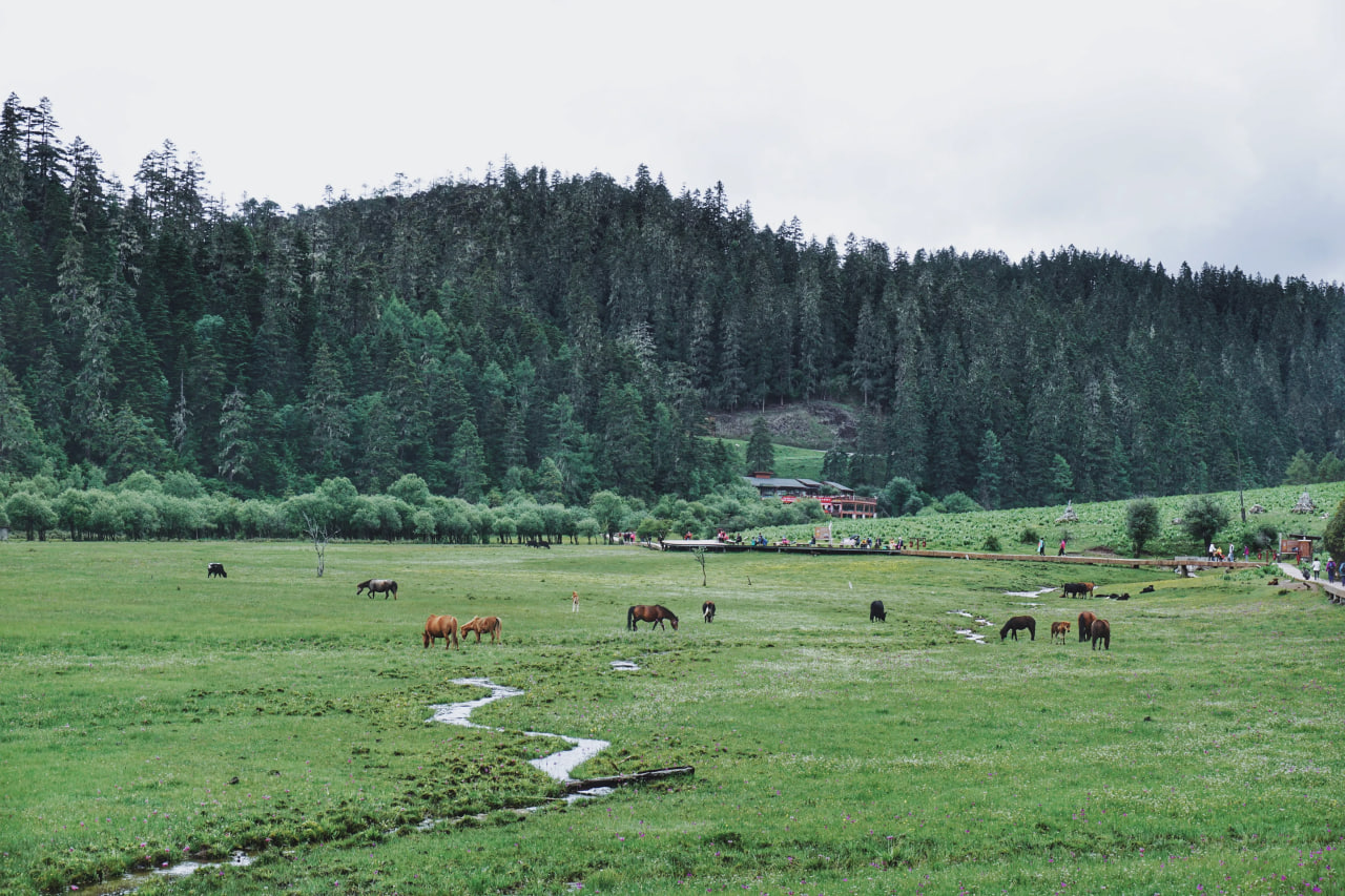 就如同藏語含義中仙氣繚繞的感覺,園內一路上皆是大片的濕地草甸和原始森林,澄如明鏡的高山湖泊,底下是翠綠的水草飄搖。