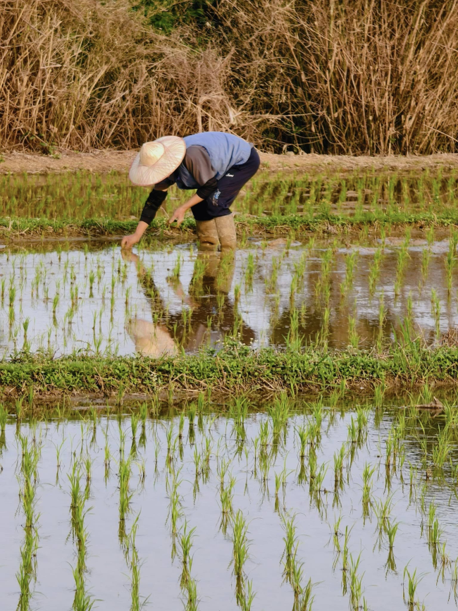 難得看到農夫在播種的時候,相信心情一定是期待又充滿希望的。在此刻,手握著種子,彎著腰插秧時,也是懷著對大自然的敬畏和對豐收的渴望並感受到土壤的溫暖與踏實感。 隨著播種接近尾聲也可以感到一種成就感,因為已經為未來的收穫奠定了基礎。像這般在與大自然對話,播下的不僅是種子,更是對大地的信任和期待。這種心情也是勤勞與希望之後,所帶來的一種平靜的喜悅和滿足的成就感。