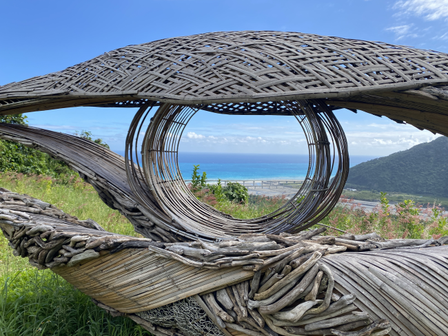 台東金崙 — 在斜坡上瞭望 第一次的打工換宿,也是我第一次離開故鄉高雄去到外地生活,離職後想讓自己休息一陣子就選擇了好山好水好無聊的台東,卻意外發現了這個秘境。 第一次踏上這個景點是我在休假期間外出晃晃,鼓起勇氣問了旁邊的姐姐是不是也一個人來玩?結果意外的發現她的下一站就是金崙,於是厚著臉皮問她可以跟著你一起玩嗎? 其實金崙還有很多漂亮的小秘境,例如:出火車站走五分鐘就到的海灘、被山林環繞的魯拉克斯吊橋、經典的野溪溫泉,其中最讓我驚艷的就是這個「在斜坡上瞭望」,他是一個裝置藝術,竹子編織而成的眼睛,看出去就是金崙最漂亮的海,無需修圖、濾鏡、調色,原相機拍出來就是這麼的美,左邊廣闊的海無邊無際,右邊藍天白雲山景綠意盎然,尤其是不同時間點來的景色也略為不同,可以說是散心的天堂,而且知道這個景點的人不多,可以自己在這邊待上大半天。 直到現在即便我已經回高雄又工作了幾年,只要想到還是會搭著火車回去這個秘境晃晃,人生絕不後悔選了金崙打工換宿,真的非常推薦大家來看看!