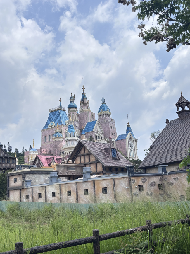 這張照片是在某個微熱的午後拍下的。天空被溫柔的雲層覆蓋,遠方那座如夢似幻的城堡靜靜佇立在眼前,藍色的屋頂和粉色牆面交織出童話般的色彩,彷彿是走進了某個遙不可及的國度。 當下站在這片綠意中,我突然覺得心很安靜。沒有急促的節奏,沒有紛擾的訊息,只有微風輕拂和童話建築帶來的想像空間。它提醒我——人生不需要永遠趕路,偶爾也該為內心留一片夢境與寧靜。 這個瞬間,就是我心中最療癒的風景