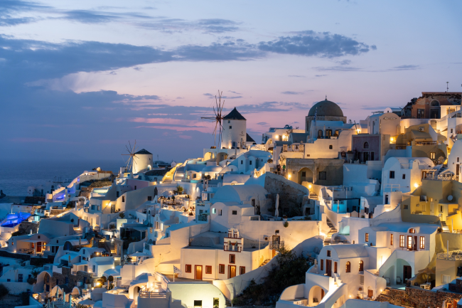 因為希臘有著純白的建築物,海也特別的藍清澈