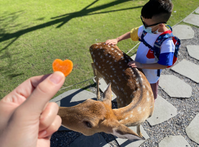 孩子們一開始還有點怕怕的,但看到鹿其實很溫和又愛吃,就整個玩開了。