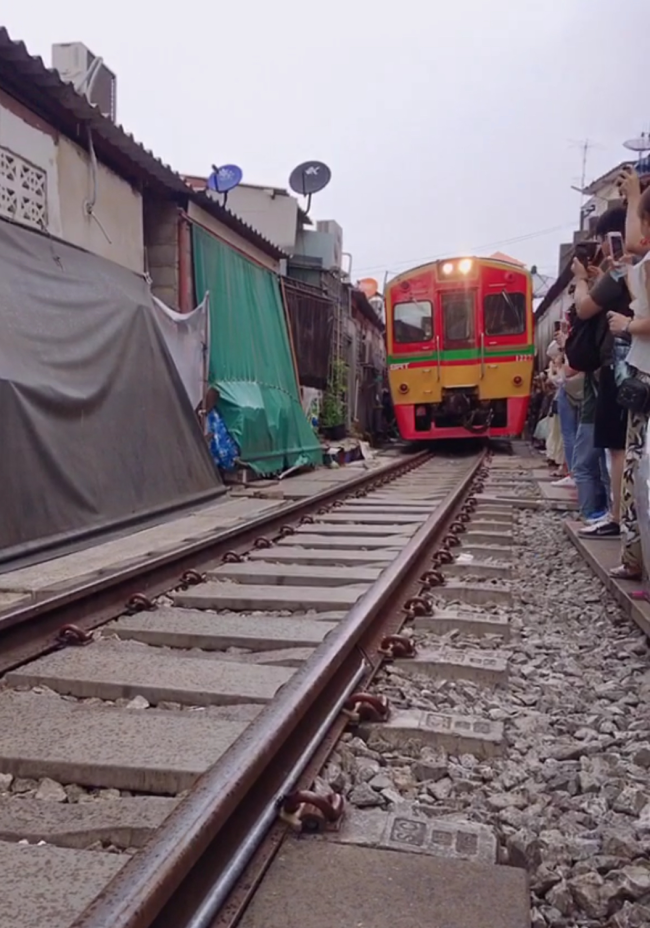 泰國美功鐵道🛤️ 列車來時市場的攤販秒速收攤 畫面非常特別