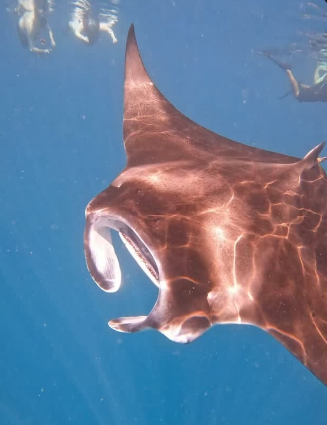 最近認識的友人,剛好到海外擔任潛水教練,託他的福,讓人可以 看到manta ray