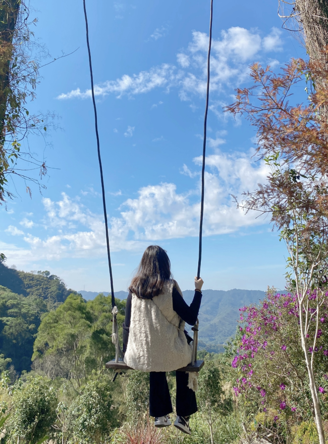 圖片中的空中鞦韆 是苗栗苑裡的「綠意山莊」