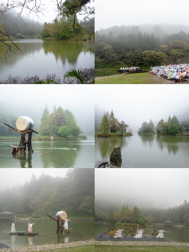 宜蘭的明池森林遊樂區,海拔在1150至1700公尺間,終年雲霧繚繞,景色變化萬千化,沿著明池湖畔漫遊,松鼠、鴛鴦、綠頭鴨與黑天鵝穿梭林間水畔,帶來驚喜。 雖然天空飄著雨,而且雲霧繚繞,優人神鼓表演者也難得穿上了雨衣,但演出內容仍舊動人,鼓聲與鑼音在寂靜的山谷中,敲擊出生命力,雖然因為雨勢過大取消行動劇場的演出