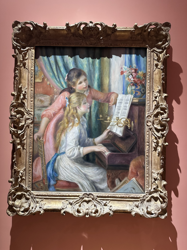 今天在博物館裡停下腳步,凝視這幅印象派名作《彈鋼琴的少女》。兩位女孩的姿態與神情,讓我感受到一種溫柔的專注:一位低頭專心彈奏,另一位傾身指引,似乎在分享音樂裡的秘密。畫面中柔和的色彩、光影的跳動,加上細膩卻不失流動感的筆觸,都讓人彷彿聽見鋼琴聲在空氣裡流淌。 在這個空間裡,我體會到的不只是藝術的美感,還有時間凝固下來的親密瞬間。博物館的氛圍,靜謐卻充滿故事,讓我感受到藝術並不是遙不可及的東西,而是能觸動我們內心最柔軟角落的力量。
