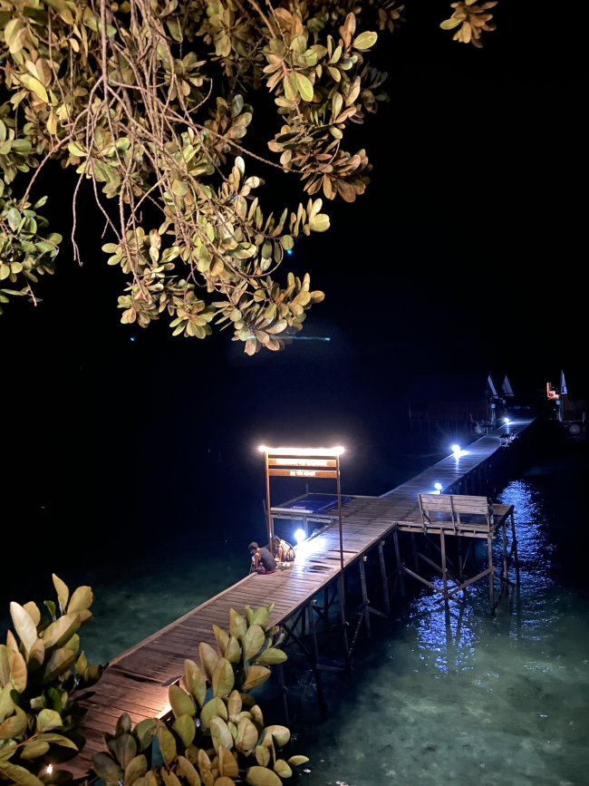 這是我在馬拉圖Maratua潛潛水時,隨手拍下的夜景,我們ㄧ群潛水愛好好友,相約前往印尼達拉灣的這個島嶼,因爲地處偏遠,需搭國際班機至雅加達,再從雅加達搭國內線至Balua,再從Balua搭船2.5小時到搭Maratua小島,這個小島遠離塵囂,四週是珊瑚圍繞,景色怡人,還有ㄧ段綿延數公里的白色沙灘,做為居民休閒活動的重要場所,夜晚我們可以在民宿的木棧碼頭看星空,銀河肉眼可見,拿個小小捲線器掛上魚鉤,就能釣上體型不小的近海魚類,這個島純樸自然,感謝ㄧ切機緣與身邊好友,讓我有如此美好的一趟潛旅