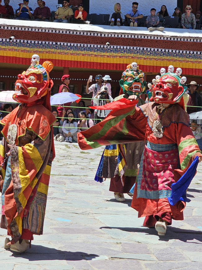 「拉達克面具節」(Ladakh Mask Dance Festivals),當地人通常稱作 查姆舞(Cham Dance) 或 面具舞蹈節,是拉達克最具代表性的宗教與文化慶典之一。這類節慶大多在寺院(Gompa)舉行,僧侶會戴上象徵神祇、護法、動物或神話角色的彩繪面具,配合鼓聲、法螺、銅鈸等樂器進行莊嚴又帶有戲劇性的舞蹈 此次是前往Hemis寺廟所舉辦的海米斯面具節(Hemis Festival) 時間:藏曆六、七月(一般在六月或七月)。 地點:海米斯寺(Hemis Gompa)。 特點:拉達克最大、最有名的面具節,以紀念蓮花生大士(Guru Padmasambhava)的誕辰。舞蹈華麗,場面盛大,還有市集。