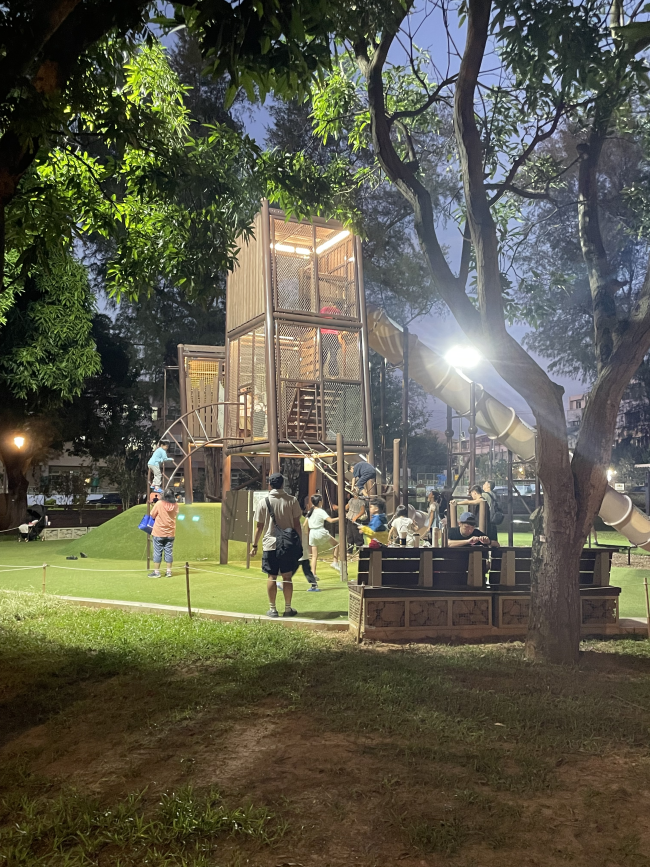 真心推薦台中后里森林搖籃遊戲場,算是一個超大的整合公園有步道規劃、搖籃吊床(大家都很悠閒的躺在上面)也有人帶野餐墊坐在旁邊野餐、區域分區空間都算蠻大的另外一般石頭溜滑梯、攀爬型溜滑梯適合國小的小朋友因為難度偏高(照片)、傍晚去5-6點人還是很多、有公廁有在整理還有洗手液我覺得很棒!小孩玩一玩最怕沒地方洗然後又上車,還會想在帶小孩去玩