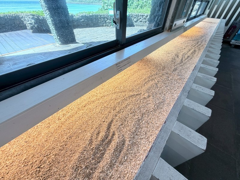 灰色建築其實就是「砂島貝殼砂展示館」,館內展示了砂島的地理背景、貝殼砂的形成過程與珍稀成分。最驚喜的是「貝殼砂觸摸區」,能親手感受白沙的觸感。如此潔白純淨的沙灘並非一夕可得,而是歷經數千萬年的時間累積而成。展示館的設立,便是告訴旅客珍惜與保護海洋生態的重要性。
