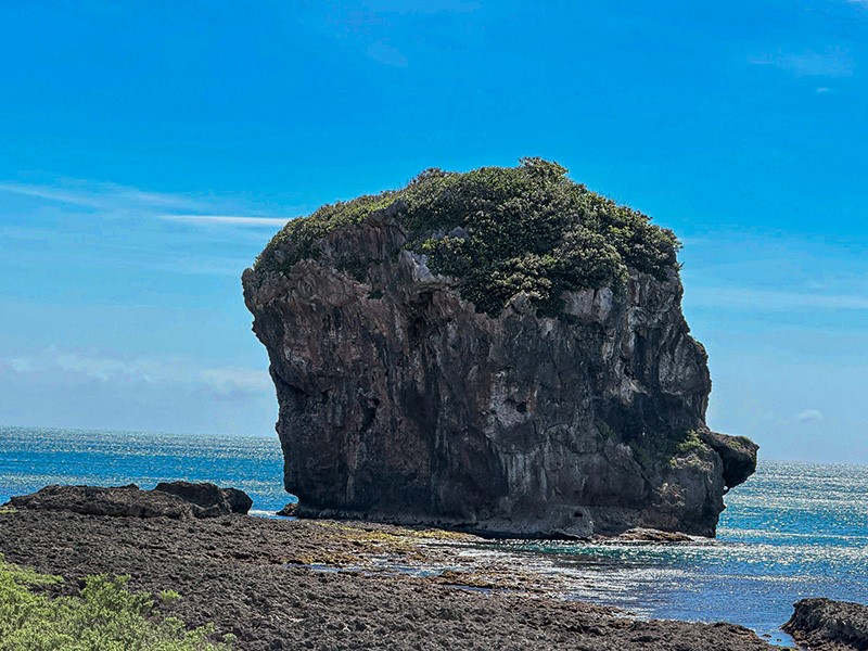 「船帆石」位於墾丁與鵝鑾鼻之間,是浪潮和海風不斷交織而成的作品,因形似一艘即將起航的帆船而得名。從遠處望去,它沉默卻堅強地矗立在蔚藍海岸線旁,讓人不禁感嘆自然的力量有多頑強卻偉大。